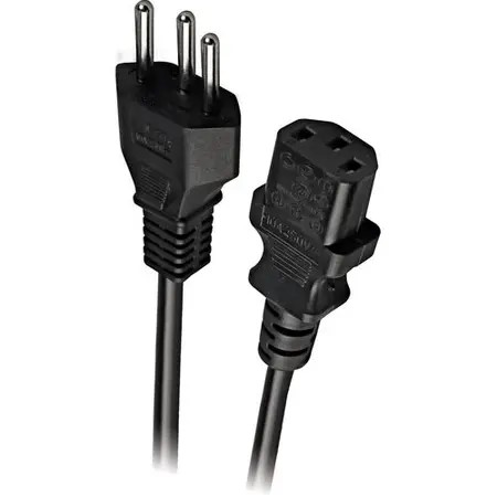Cabo de Força Novo Padrão ABNT 10A para conexão de equipamentos na rede elétrica. Pode ser utilizado em: computadores, monitores, fonte, televisão, entre outros equipamentos. Com Pinos (tripolar: 2P+T), esse cabo tem é PP é construido com 3x0,75mm², e conta com plugue 2P+T de 10 A.