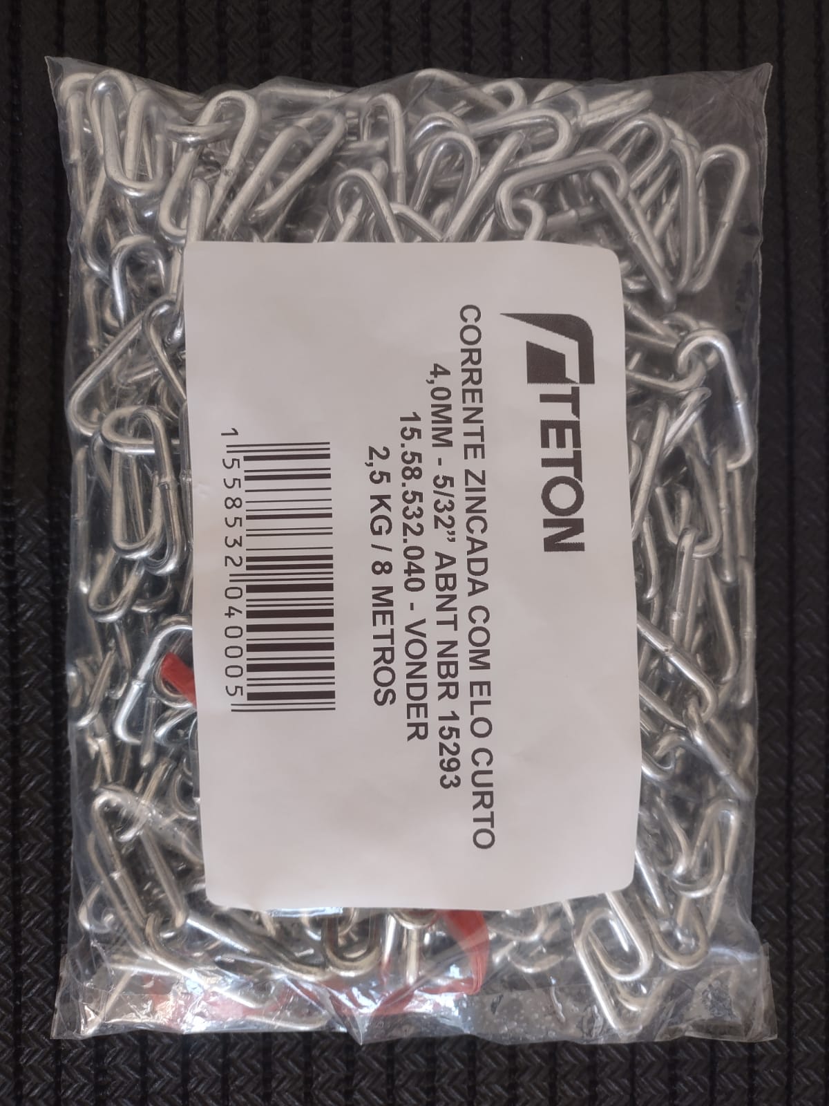 Descrição Completa: Corrente zincada, com elo curto, 4,0 mm - 5/32", VONDER