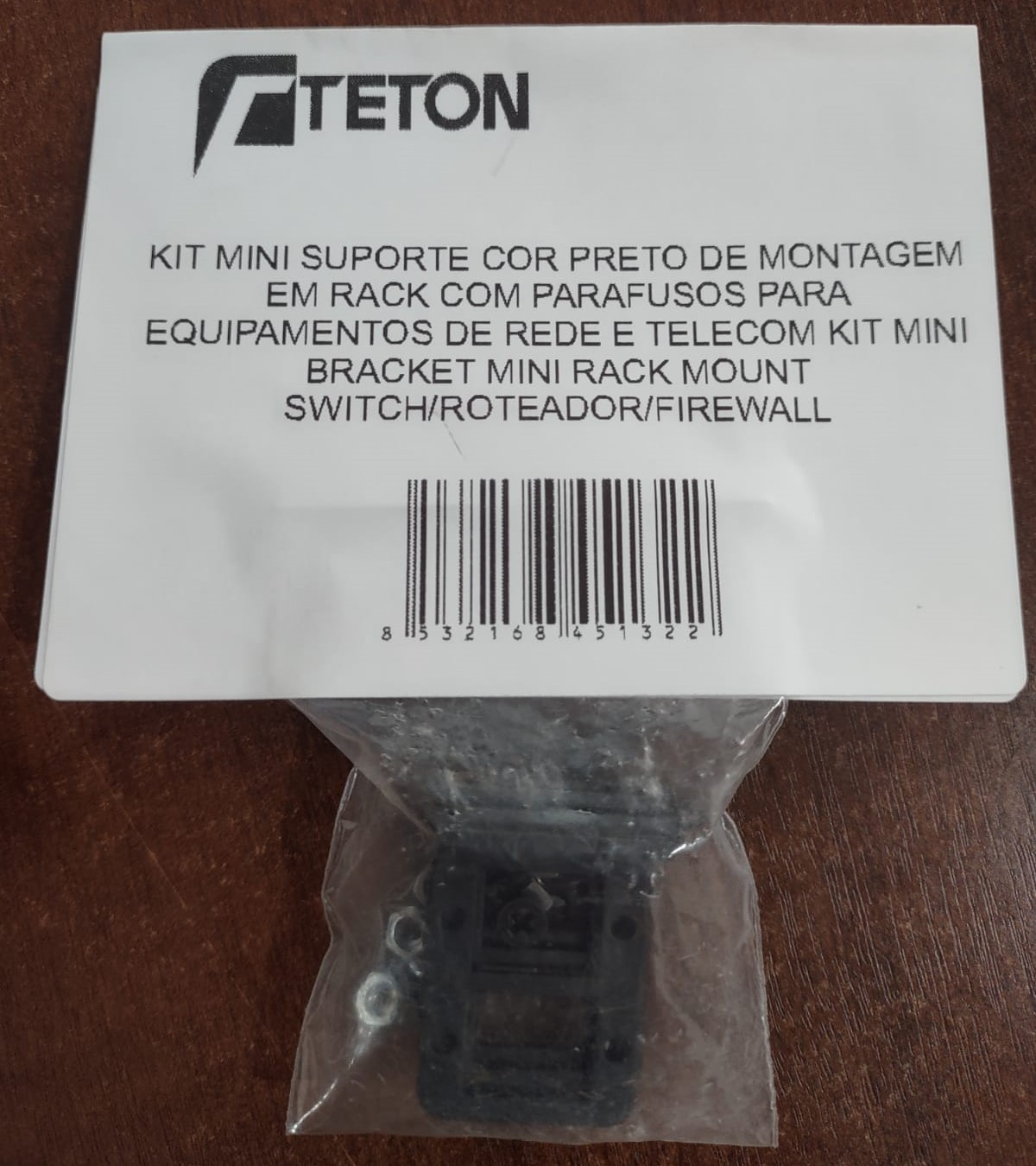 KIT MINI SUPORTE COR PRETO DE MONTAGEM EM RACK COM PARAFUSOS PARA EQUIPAMENTOS DE REDE E TELECOM KIT MINI BRACKET MINI RACK MOUNT SWITCH/ROTEADOR/FIREWALL - TETON