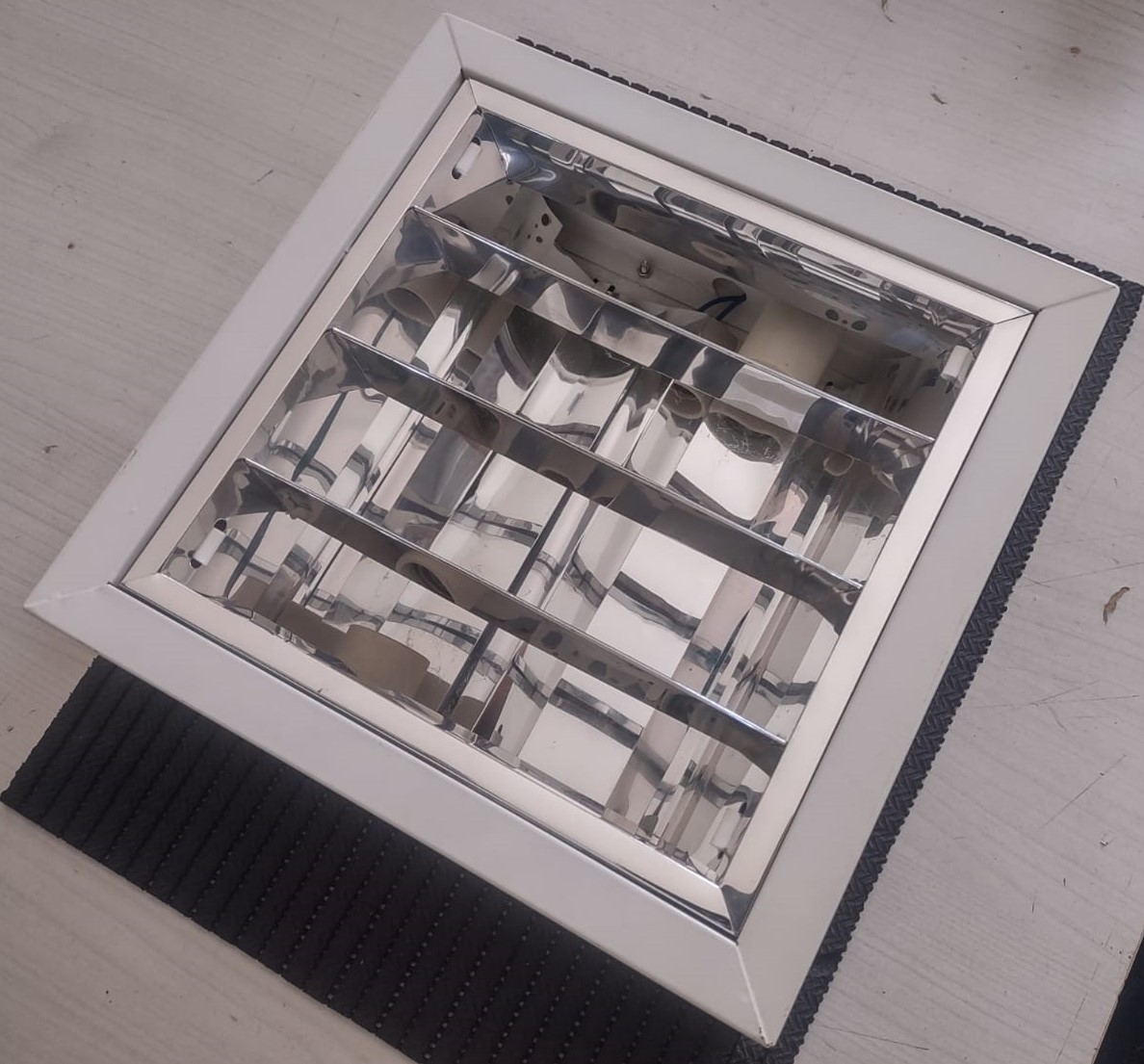 Corpo em chapa de aço fosfatizada com pintura microtexturizada na cor branca. Refletores e aletas parabólicas em alumínio anodizado de alta pureza e refletância. Plafon Lumidec possui altura de 10,0 cm, altura de 28,0 cm, comprimento de 28,0 cm, capacidade para 02 lâmpadas. Recomendado para hall de entrada, sala, sala de jantar e sala de jogos. Luminária de fácil limpeza, fabricado em dois materiais: Chapa de aço e alumínio. É bivolt com potência de 23W.