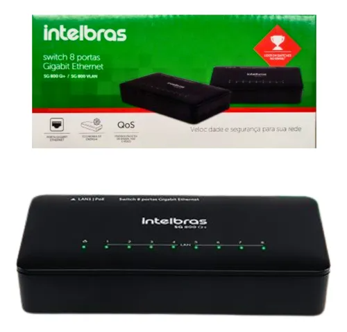 SWITCH COM 8 PORTAS GIGABIT ETHERNET SG 800 Q+ - INTELBRAS